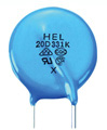 壓敏電阻是半導體元件。當施加在壓敏電阻兩端的電壓從0至U1mA(壓敏電壓)時,流經壓敏電阻的電流≤1mA,壓敏電阻阻值較大,我們可以認為在這一段壓敏是“絕緣體”;當瞬間脈沖高壓入侵時,脈沖電壓峰值超過壓敏電壓,壓敏電阻阻值迅速變小,動作反應時間小于20*10-9秒,壓敏“瞬間”變?yōu)椤皩w”。例如:當壓敏兩端脈沖電壓峰值是壓敏電壓U1mA的2倍時,壓敏的電阻值通常小于1Ω,它完全是導體了。